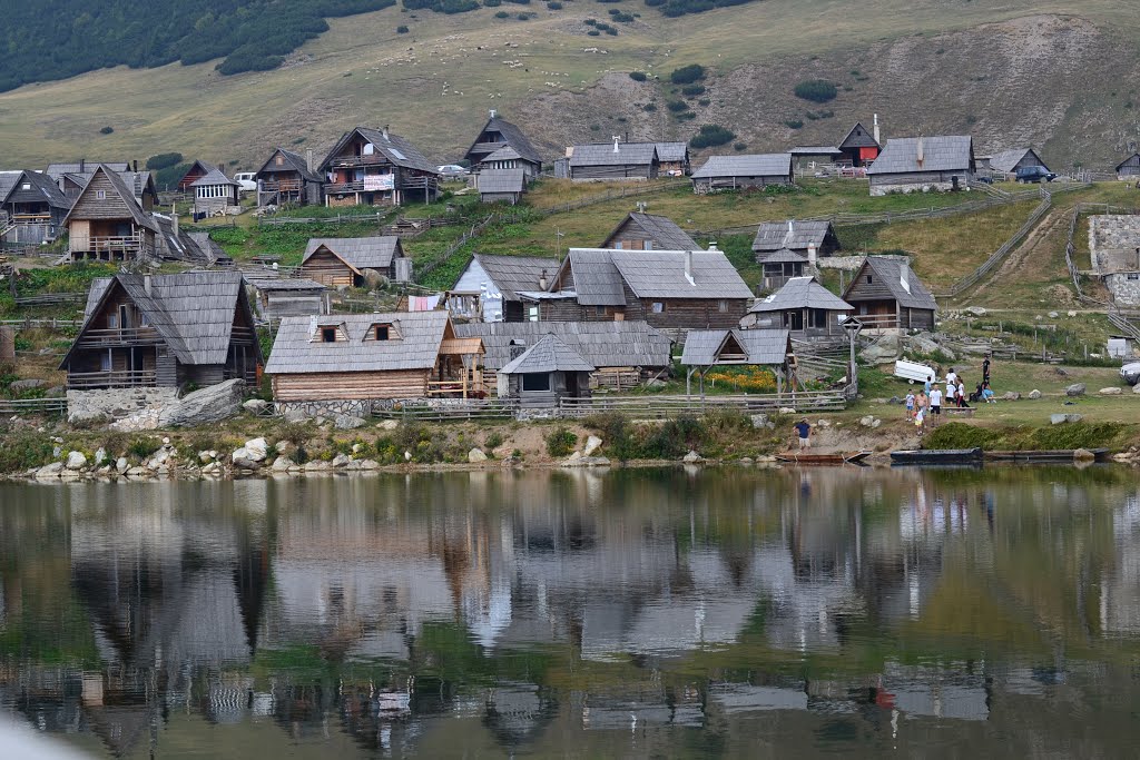 Prokoško Lake is surrounded by rustic shepherd’s houses called katuns, constructed from materials like wood and logs.